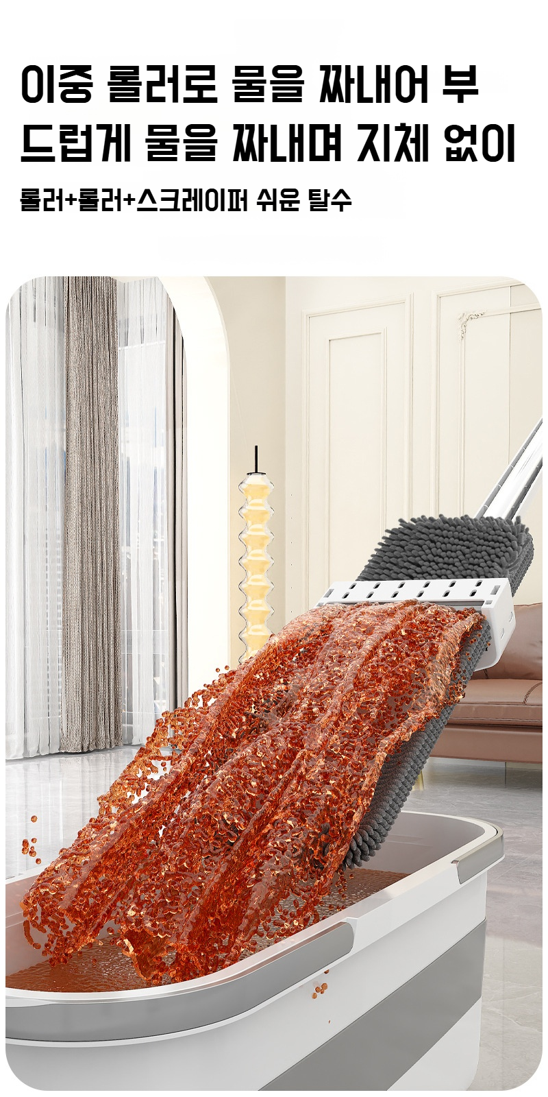 가정용 플랫 밀대 건습 겸용 원터치 셰닐 리필 손세탁 우드 플로어 밀대
