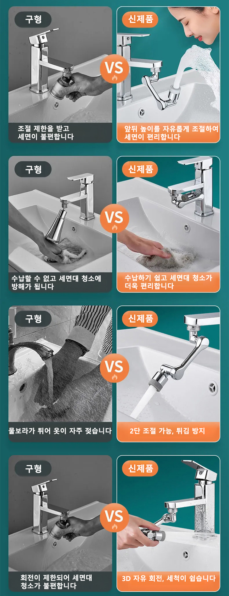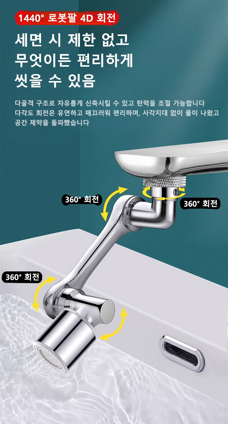 [다기능 로봇팔 신축 및 회전식】튀김 방지 수도꼭지